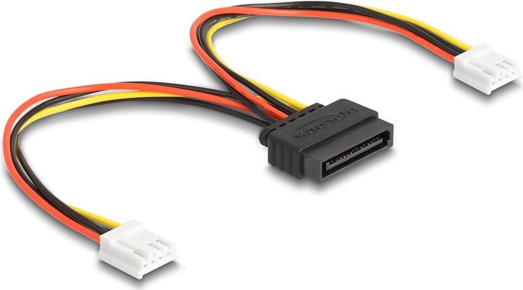Das Delock-Stromadapterkabel bietet zuverlässige Stromanschlussoptionen mit einem effizienten Design. Es verfügt über einen 15-poligen Serial-ATA-Stromanschluss auf der linken Seite, der die Kompatibilität mit verschiedenen Geräten gewährleistet. Die rechte Seite des Kabels bietet zwei 4-polige Mini-Stromanschlüsse für vielseitige Anschlussmöglichkeiten. Dieses Stromadapterkabel mit einem Kabelquerschnitt von 20 AWG wurde für optimale Leistung entwickelt und erfüllt die RoHS-Normen.