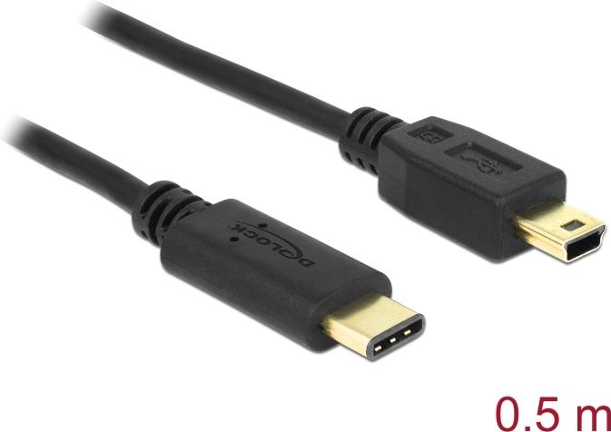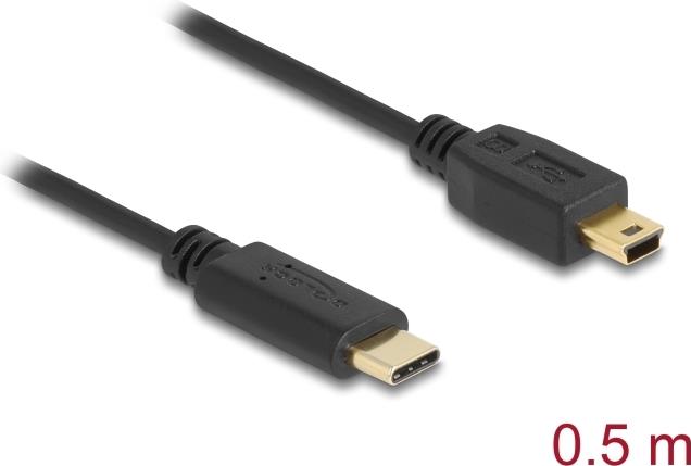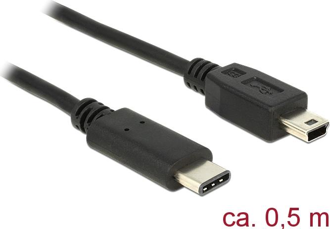 DeLOCK - USB-Kabel - USB-C (M) bis mini-USB Typ B (M) - USB 2.0 - 500 mA - 50 cm - Schwarz