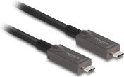 Dieses USB Kabel von Delock ermöglicht die Verbindung zwischen Geräten mit einem USB Type-C™ Anschluss und einem PC oder einem Notebook mit freiem USB Type-C™ Port.Aktives Optisches KabelDieses aktive optische Kabel nutzt Lichtwellenleiter, um High-Speed Signale zu übertragen. Verglichen mit dem traditionellen Kupferkabel ist es weicher, dünner, leichter und kann Signale verlustfrei über längere Distanzen übertragen.DisplayPort 1.4 mit 2 LanesDas Kabel ist für den Anschluss eines USB-C™ Monitors mit einer Auflösung bis zu 4K Ultra HD (3840 x 2160 @ 144 Hz) an einen Computer mit USB-C™ Schnittstelle und DisplayPort Alternate Mode Unterstützung geeignet.USB mit 10 GbpsDas aktive optische Kabel ermöglicht Datenübertragungsraten bis zu 10 Gbps beim Anschluss von USB 10 Gbps kompatiblen Geräten. Selbstverständlich können auch USB 2.0 Geräte angeschlossen werden.USB Power Delivery Unterstützung bis zu 60 WattDurch die Unterstützung des USB Power Delivery Standards können angeschlossene Geräte mit Strom versorgt werden, bis zu 60 W (20 V / 3 A) sind möglich.HinweisDieses Kabel ist nur mit DisplayPort (DP Alt-Mode) Geräten kompatibel und nicht mit Thunderbolt™ Geräten.Hauptmerkmale