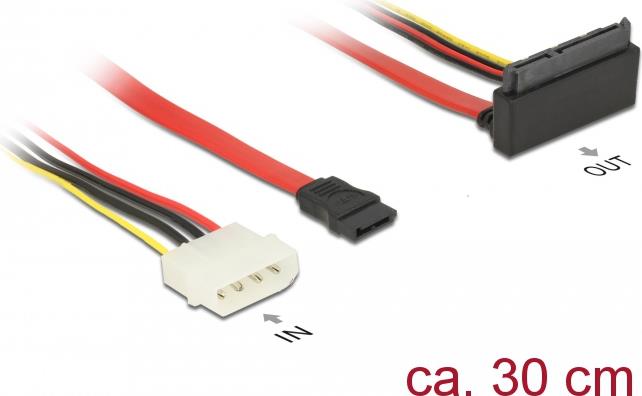 DeLOCK 85514 SATA-Kabel 0,3 m 1 x Molex 4 pin 1 x SATA 22 pin - 1 x SATA 7 pin Mehrfarbig (85514)