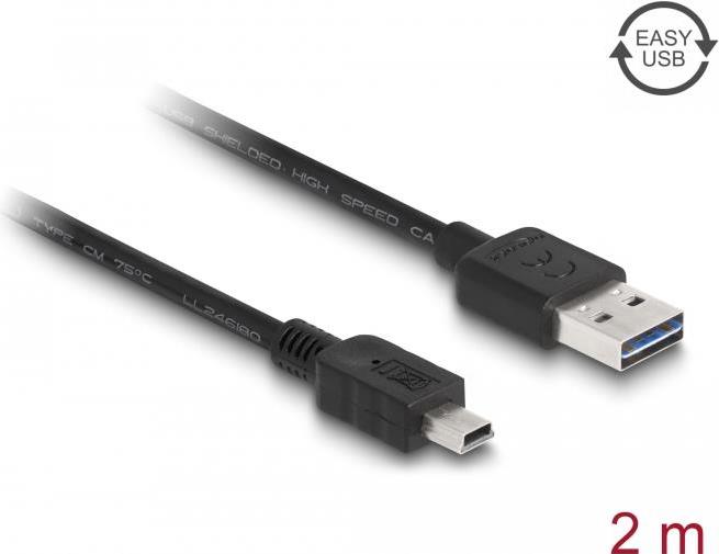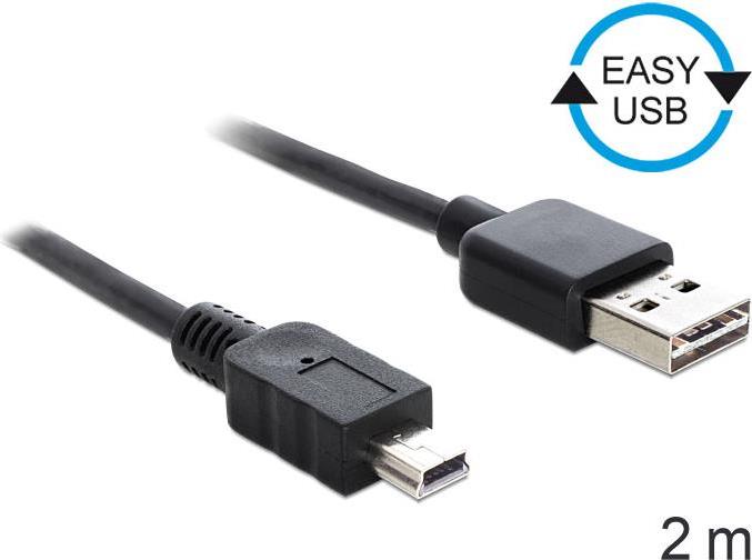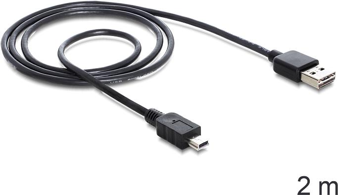 DeLOCK Easy - USB-Kabel - USB (M) umkehrbar bis Mini-USB, Typ B (M) - USB 2.0 - 2 m - Schwarz