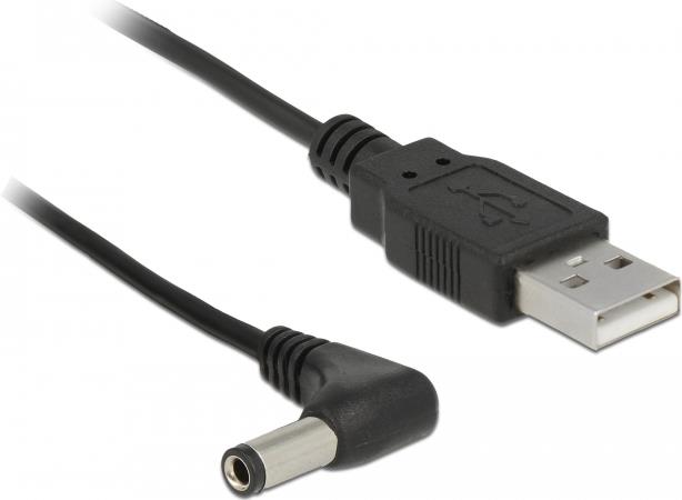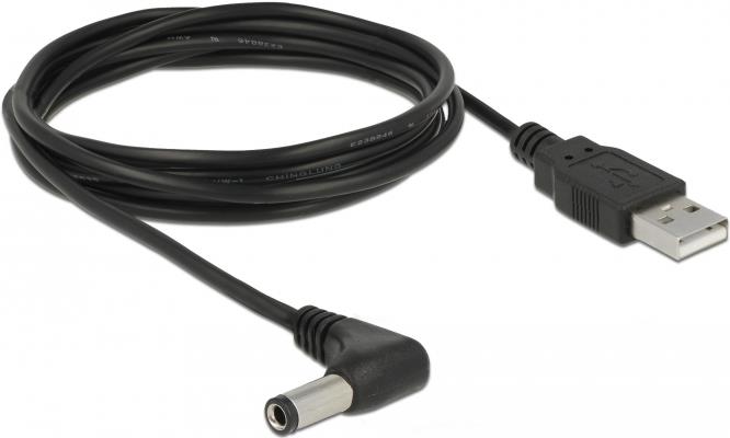 DeLOCK - Stromkabel - Gleichstromstecker 5,5 x 2,5 mm (M) gewinkelt bis USB (nur Strom) (M) - 1,5m - Schwarz (85588)