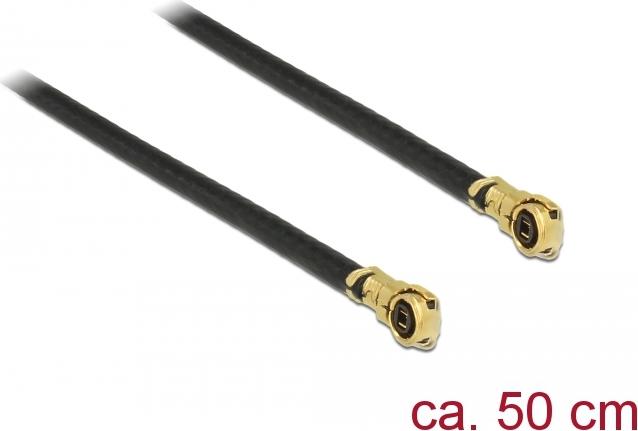 Delock - Antennenkabel - MHF4/HSC Stecker gewinkelt zu MHF4/HSC Stecker gewinkelt - 50cm - Koax - Schwarz (89646)