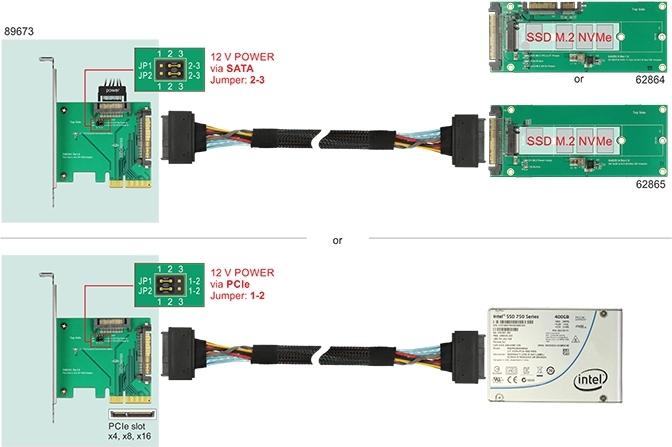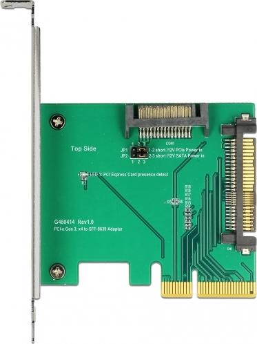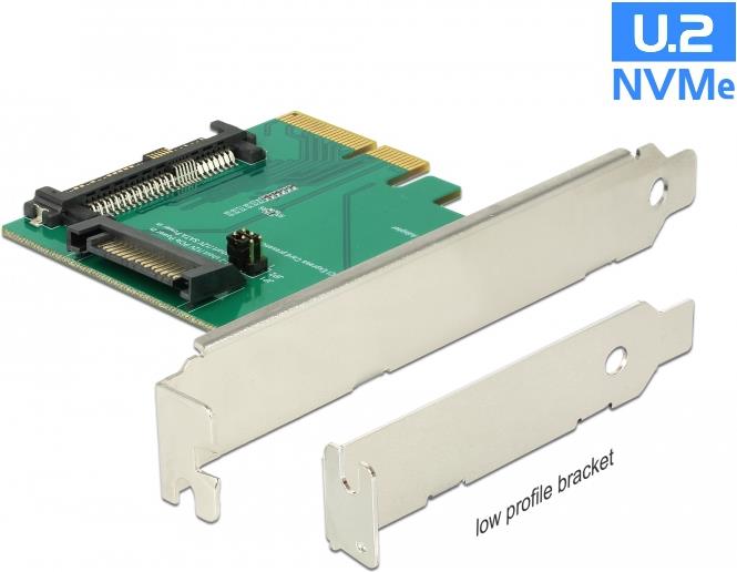 Diese PCI Express Karte von Delock erweitert den PC um einen U.2 Anschluss. An diesen kann eine U.2 SSD angeschlossen werden.