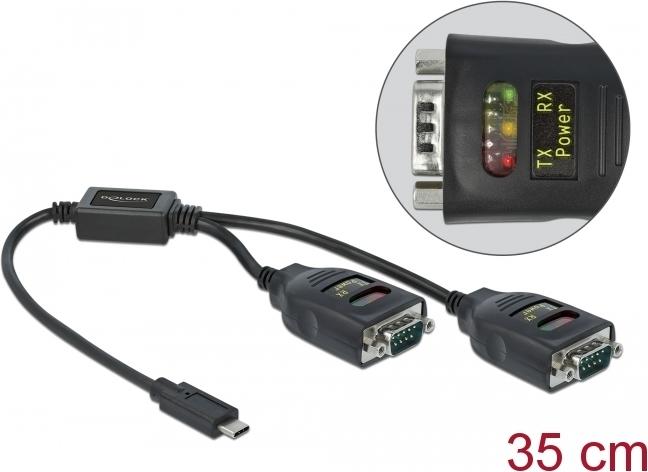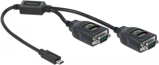Delock Adapter USB Type-C to 2 x Serial RS-232 DB9 with 15 kV ESD protection - Serieller Adapter - USB-C - RS-232 x 2