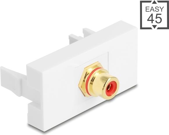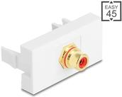 Das Delock Easy 45 Snap-In-Modul ist für die Integration in verschiedene Setups konzipiert. Mit einem vergoldeten roten Cinch-Ausgangsanschluss gewährleistet es eine optimale Signalübertragung und Langlebigkeit. Dank seiner rechteckigen Form und der Clip-In-Befestigung bietet dieses Modul eine effiziente und sichere Verbindung und eignet sich somit für den privaten und professionellen Einsatz.
