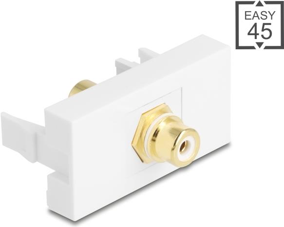 Das Delock Easy 45 Snap-In-Modul bietet eine zuverlässige und effiziente Lösung für Ihre Konnektivitätsanforderungen. Dieses rechteckige Modul verfügt über einen vergoldeten Ausgangsanschluss vom Typ RCA weiß, der eine hervorragende Signalübertragung und Langlebigkeit gewährleistet. Das Modul ist für eine einfache Verwendung konzipiert und verfügt über einen Befestigungsmodus, der eine sichere Clip-In-Installation ermöglicht. Es eignet sich für verschiedene Anwendungen und benötigt nur einen einzigen Gang-Platz.