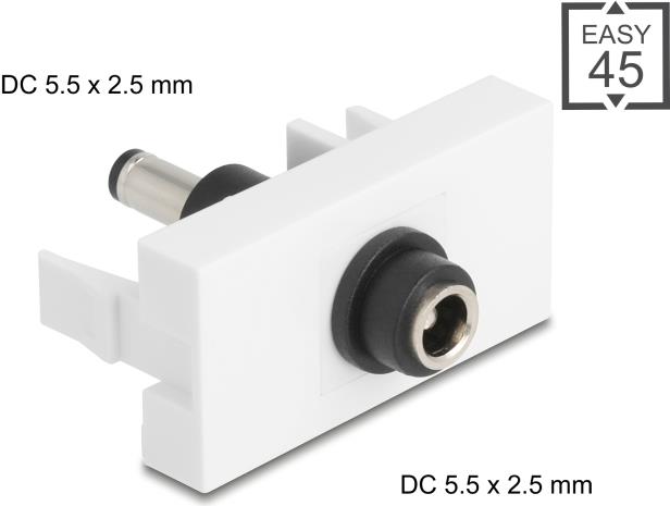 Das Delock Easy 45 Snap-In-Modul bietet eine praktische Lösung für Ihre Anschlussanforderungen. Mit einem DC-Ausgangsstecker (5,5 x 2,5 mm) und einem kompatiblen Eingangsstecker gewährleistet dieses Gerät eine nahtlose Integration in Ihre bestehenden Konfigurationen. Die rechteckige Form und die Clip-In-Befestigung sorgen für eine einfache Installation und Stabilität, wodurch es zu einer unverzichtbaren Komponente für verschiedene Anwendungen wird.