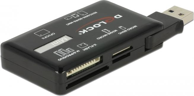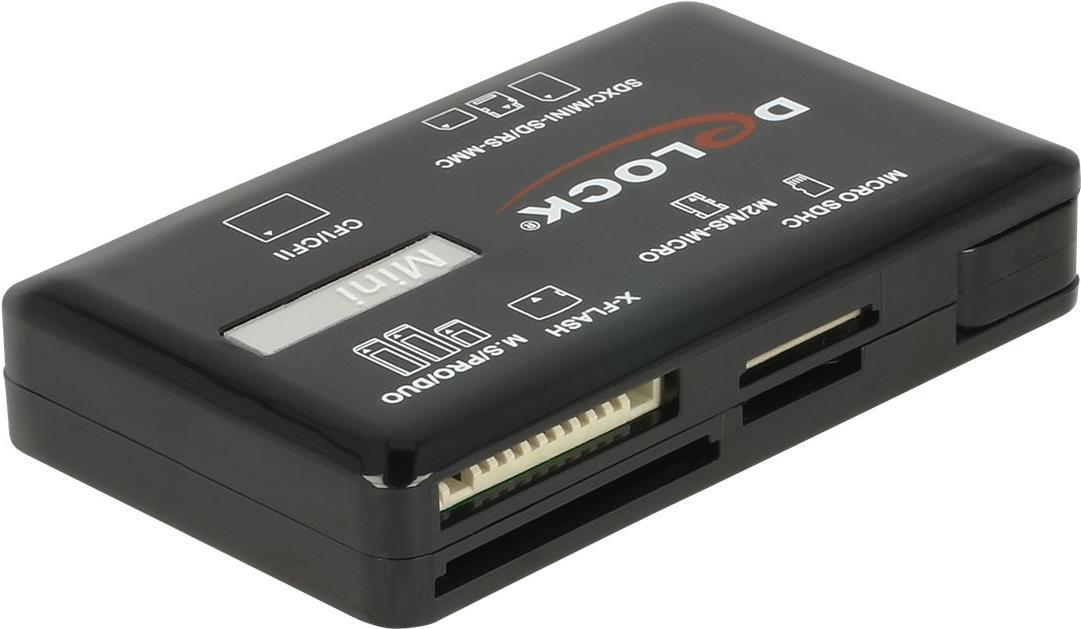 Dieser Card Reader von Delock verfügt über sechs Speicherkartenslots und ermöglicht das Lesen und Beschreiben vieler verschiedener Speicherkarten. Über die USB Typ-A Schnittstelle wird der Card Reader an einen PC oder ein Notebook angeschlossen.
