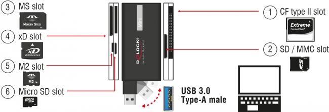 | Unterstützte Speicherkarten | CompactFlash-Karte, Typ I, CompactFlash-Karte, Typ II, Memory Stick, Memory Stick PRO, Microdrive, MultiMediaCard, SD-Speicherkarte, Memory Stick Duo, xD-Picture-Karte, Memory Stick PRO Duo, CompactFlash Card, microSD, CFast Card Typ I, CFast Card Typ II, MultiMediaCardmicro, SDHC-Speicherkarte, Memory Stick Micro (M2), microSDHC, Memory Stick PRO-HG Duo, xD-Picture Card Type H, xD-Picture Card Type M, SDXC-Speicherkarte, microSDXC, SDHC UHS-I Memory Card, SDXC UHS-I Speicherkarte, Memory Stick XC, CFast Card, microSDHC UHS-I Memory Card, microSDXC UHS-I Memory Card, SDHC UHS-II Memory Card, SDXC UHS-II Speicherkarte, CompactFlash Card type III, Memory Stick PRO-HG, CompactFlash UDMA, microSDHC UHS-II Memory Card, microSDXC UHS-II Memory Card, SDHC UHS-III Memory Card, SDXC UHS-III Memory Card, microSDHC UHS-III Memory Card, microSDXC UHS-III Memory Card, MultiMediaCard II, Memory Stick PRO-MG Duo, Memory Stick PRO-MG, Memory Stick Duo-MG, Memory Stick PRO-HG-MG Duo |