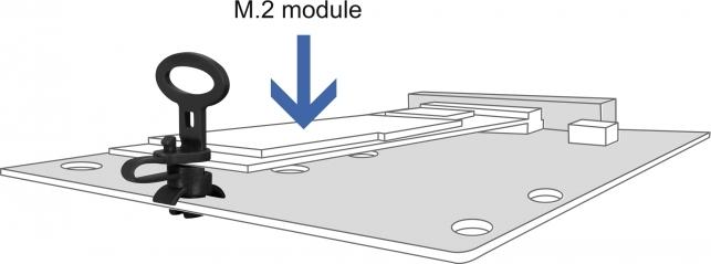 Mit diesem Abstandshalter von Delock lässt sich schnell und werkzeuglos z. B. ein M.2 Speicher auf einer Platine befestigen.