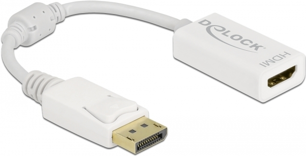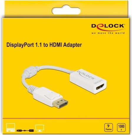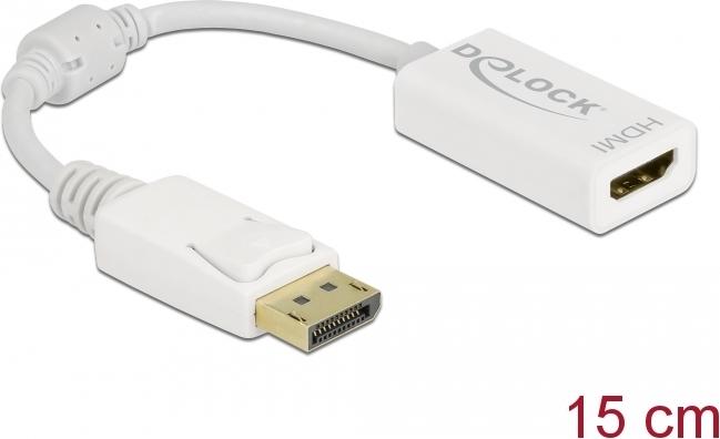 Delock - Videoadapter - DisplayPort männlich Verriegelung bis HDMI weiblich - 15cm - weiß - passiver Konverter, 1080p-Unterstützung, 60 Hz (61015)