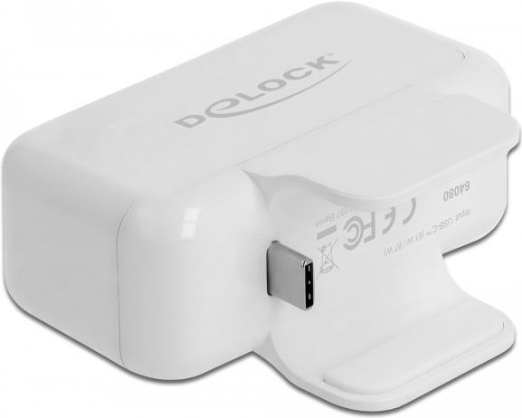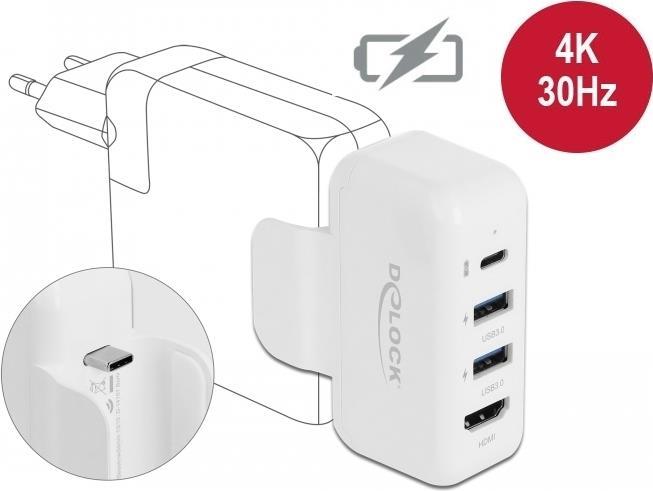 Dieser Adapter von Delock kann auf ein Apple Netzteil, z. B. vom MacBook Pro, gesteckt werden und erweitert das Netzteil um drei USB Anschlüsse und einen HDMI Anschluss. Die USB Anschlüsse können entweder zum gleichzeitigen Aufladen von bis zu drei USB Geräten genutzt werden, oder bei entsprechender Verbindung zum Notebook oder Tablet können die USB Typ-A Buchsen als USB 3.0 Hub verwendet werden. Am HDMI Anschluss kann ein zusätzlicher Monitor angeschlossen werden.