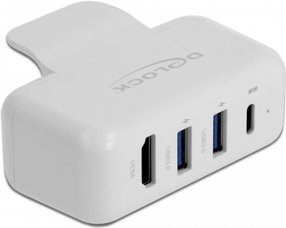 Dieser Adapter von Delock kann auf ein Apple Netzteil, z. B. vom MacBook Pro, gesteckt werden und erweitert das Netzteil um drei USB Anschlüsse und einen HDMI Anschluss. Die USB Anschlüsse können entweder zum gleichzeitigen Aufladen von bis zu drei USB Geräten genutzt werden, oder bei entsprechender Verbindung zum Notebook oder Tablet können die USB Typ-A Buchsen als USB 3.0 Hub verwendet werden. Am HDMI Anschluss kann ein zusätzlicher Monitor angeschlossen werden.Durch den USB Type-C Stecker und den Arretierungen an den Seiten hat der Adapter einen festen Halt am Netzteil.