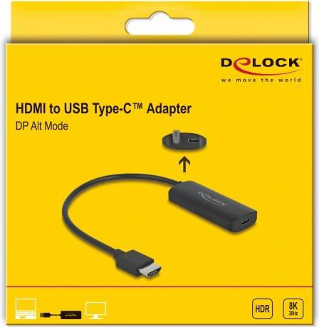 DeLOCK Adapter HDMI-A Stecker zu USB Type-C™ Buchse (DP Alt Mode) 8K - 0,18 m - HDMI Typ A (Standard) - USB Type-C + Micro-USB - Männlich - Weiblich - 1.4/2.2 (64212)