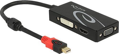 Mit diesem mini Displayport Adapter von Delock kann das System um eine VGA, HDMI oder DVI Schnittstelle erweitert und verschiedene Geräte, wie z.B. Fernseher, Projektor, Monitor etc. angeschlossen werden. Es kann nur ein Monitor am Adapter betrieben werden.