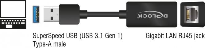 Delock - Netzwerkadapter - USB 3,1 Gen 1 - Gigabit Ethernet x 1 - Schwarz (65903)