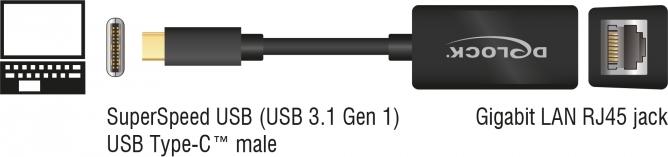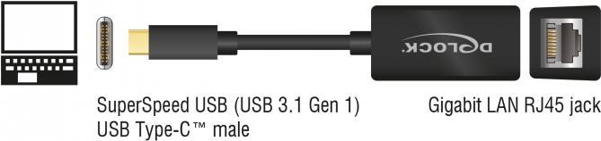DeLock - Netzwerkadapter - USB 3,1 Gen 1 - Gigabit Ethernet x 1 - Schwarz (65904)