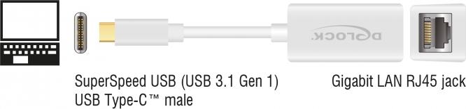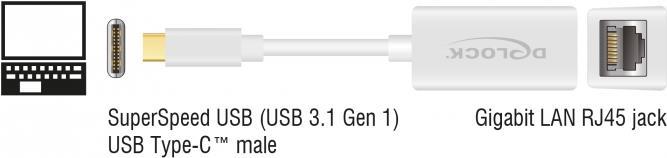 DeLock - Netzwerkadapter - USB 3,1 Gen 1 - Gigabit Ethernet x 1 - weiß (65906)