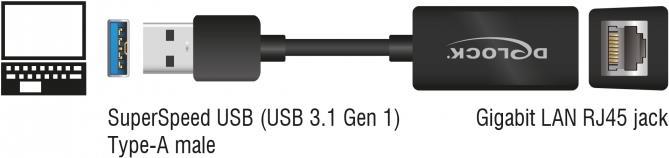 Delock - Netzwerkadapter - USB 3,2 Gen 1 - Gigabit Ethernet x 1 - Schwarz (66039)