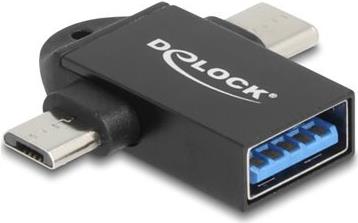 Delock Adapter USB 10 Gbps 2 in 1 USB-A Buchse zu USB Type-C™ Stecker + USB Micro-B Stecker OTG (60739)