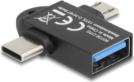 • Delock Adapter USB 10 Gbps 2 in 1 USB-A Buchse zu USB Type-C™ Stecker + USB Micro-B Stecker OTG (60739)