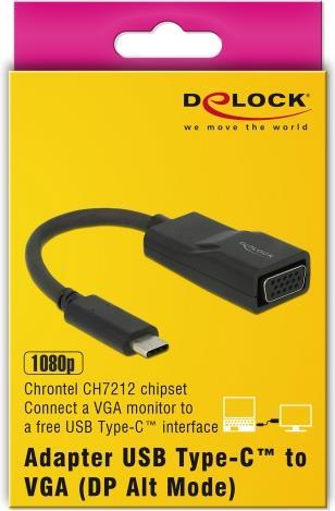 | Produktbeschreibung | DeLOCK Adapter USB Type-C male > VGA female - Videokonverter - Chrontel CH7212 - Schwarz |