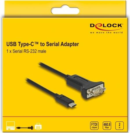 Delock Adapter USB Type-C™ zu 1 x Seriell RS-232 D-Sub 9 Pin Stecker mit Muttern 2 m (64196)