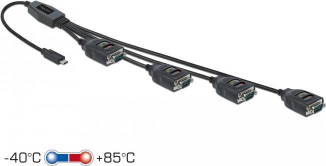 Delock - Kabel USB / seriell - USB-C (M) bis DB-9 (M) 90 mA - 38/48/60/72 cm - Distanzschrauben, aktiv, bi-direktional - Schwarz (90495)