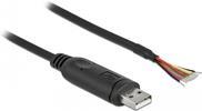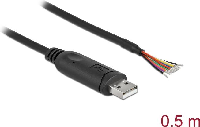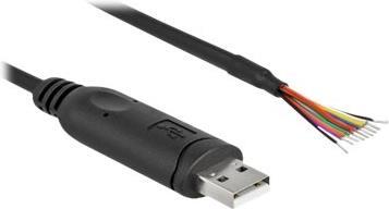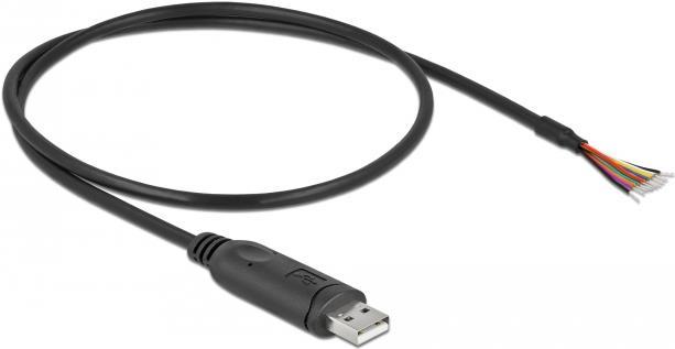 Dieses USB 2.0 Typ-A zu seriell RS-232 Adapterkabel von Delock eignet sich als Verbindungskabel zwischen einem Gerät mit USB 2.0 und einem Gerät mit RS-232 Anschluss. Durch die verzinnten offenen Kabelenden kann die Verbindung direkt an einem RS-232 Geräteanschluss oder flexibel mit diversen Terminalblocks erfolgen. Darüber hinaus lassen sich damit kundenspezifische Adapter und Kabelkonfektionen herstellen.