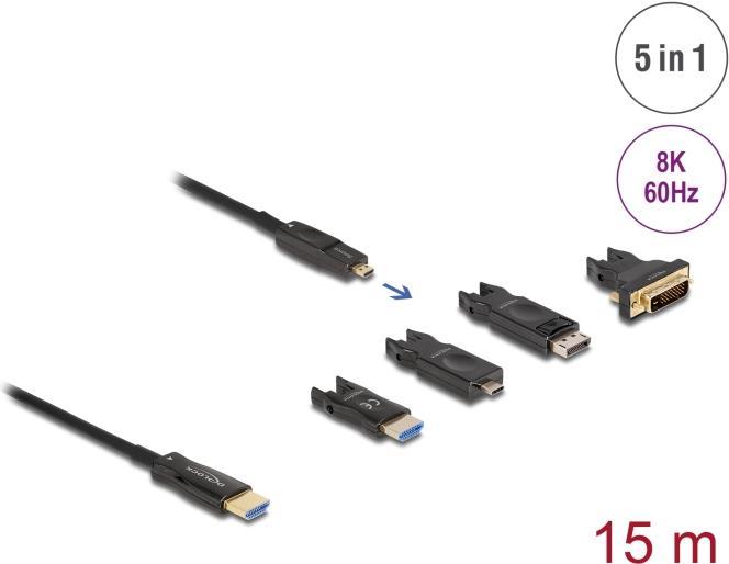 Delock - High Speed - HDMI-Kabel - 19 pin micro HDMI Type D männlich zu HDMI männlich - 15,0m - Hybrid Kupfer/Kohlefaser - Schwarz - Support von 8K 60 Hz, 12,70cm (5") 1 (86006)