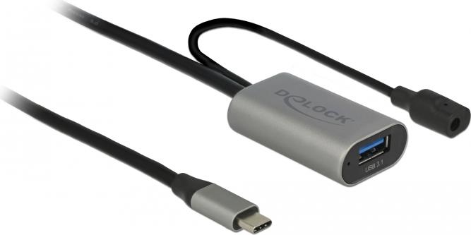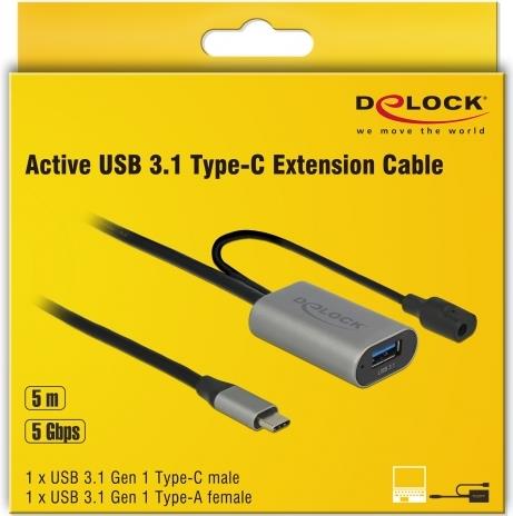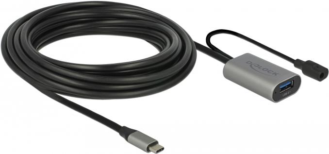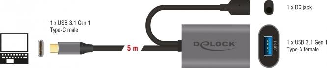 DeLOCK - USB-Verlängerungskabel - USB-C (M) bis Gleichstromstecker, USB Typ A (W) - USB 3,1 Gen 1 - 5,0m - Grau, Schwarz (85391)