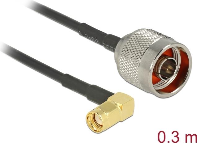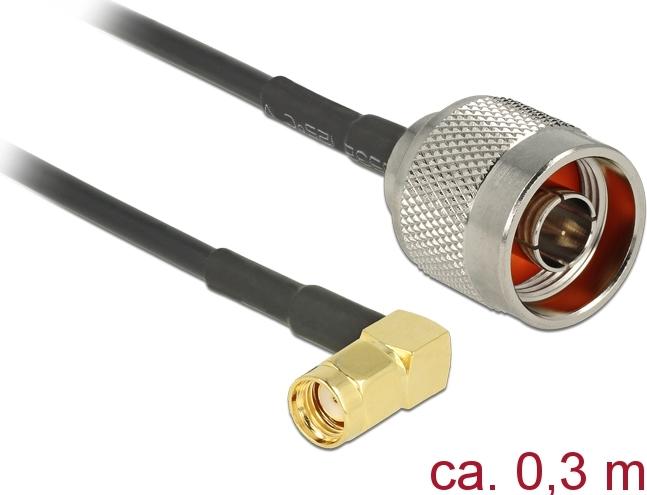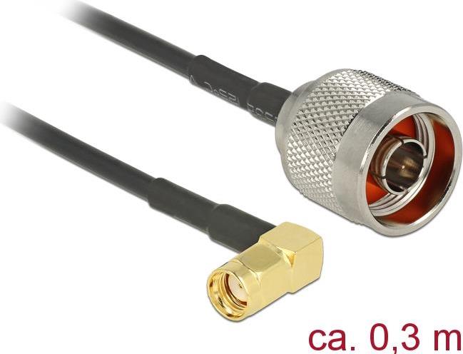 DeLOCK - Antennenkabel - N-Anschluss (S) gerade bis RP-SMA (S) gewinkelt - 30cm - Koax - Schwarz (89579)