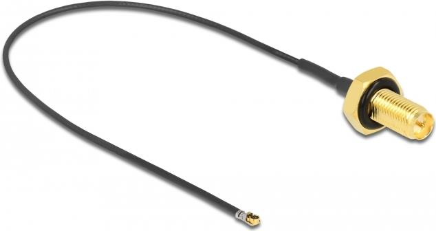 Delock - Antennenkabel - RP-SMA (W) Bulkhead bis MHF 4L LK (M) - 20cm - 1,37 mm - Koax - Grau, Schwarz (12657)