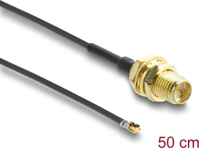 Delock - Antennenkabel - MHF 4L LK (S) bis RP-SMA (R) - 50cm - 1,37 mm - Koax - Schwarz (12660)