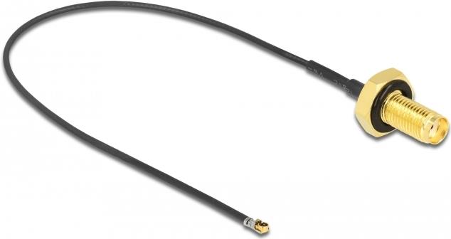 Delock - Antennenkabel - SMA (W) Bulkhead bis MHF 4L LK (M) - 20cm - 1,37 mm - Koax - Grau, Schwarz (12663)