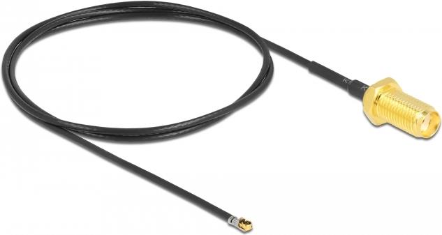Delock - Antennenkabel - SMA (W) Bulkhead bis MHF 4L LK (M) - 50cm - 1,37 mm - Koax - Grau, Schwarz (12666)