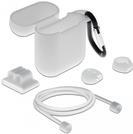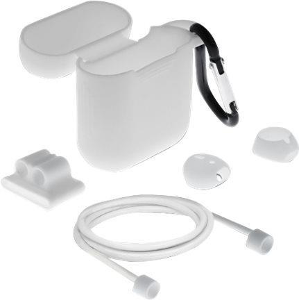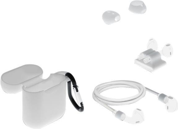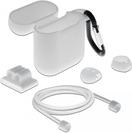 Dieses Zubehörset von Delock bietet einen 5-in-1-Rundumschutz für die Apple AirPods. Es beinhaltet die Schutztasche für den Ladebehälter, einen Halteclip, zwei Ohrstöpsel, ein Halteband und einen Karabinerhaken.