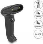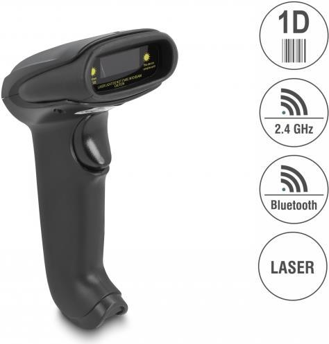 Dieser Barcode-Laserscanner von Delock kann direkt an einen PC oder Laptop angeschlossen werden. Alternativ kann ein Adapter verwendet werden, um den Scanner mit einem Mobiltelefon oder Tablet zu verbinden. Mit 100 Scans pro Sekunde können alle gängigen 1D-Barcode-Typen präzise erfasst werden, auch aus großer Entfernung. Die Datenübertragung der gescannten Barcodes erfolgt entweder über Bluetooth direkt mit dem Bluetooth-fähigen Ausgabegerät oder über das 2,4 GHz-Frequenzband mit dem mitgelieferten USB-Dongle.