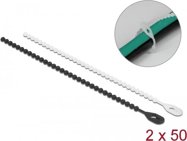 Delock Beaded - Kabelbinder - 12cm - Schwarz, weiß (Packung mit 100) (19506)