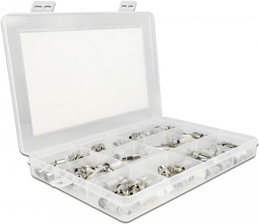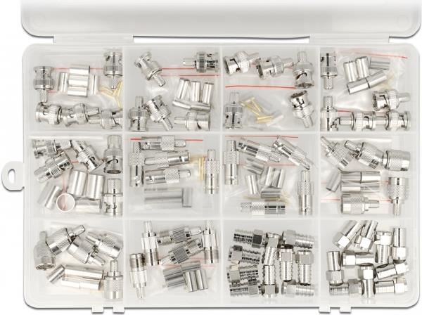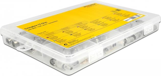 Diese hochwertige Box von Delock beinhaltet verschiedene Crimpkonnektoren der Hochfrequenztechnik zur Verbindung von Komponenten.