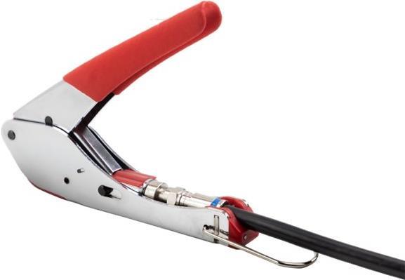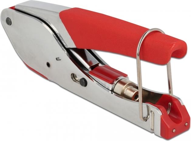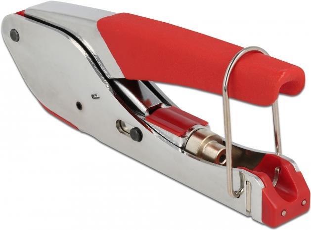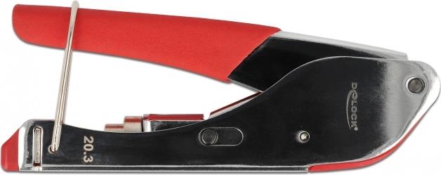 Diese handliche Crimpzange von Delock ist für das Crimpen von F-Kompressionssteckern geeignet und verbindet das Kabel zuverlässig mit dem Stecker.