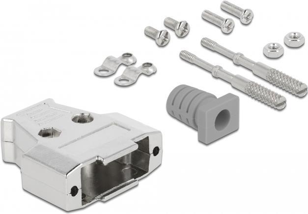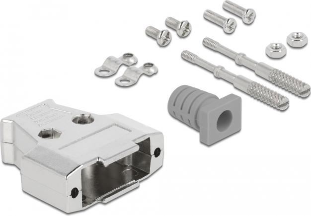 Dieses Metallgehäuse von Delock eignet sich für D-Sub 15 Steckverbinder, um sie vor Verschmutzungen und Beschädigungen zu schützen. Kabelklemmen und Zugentlastungen bieten zusätzliche Sicherheit für das Kabel.