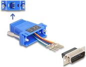 Das Delock Assembly Kit bietet eine Lösung für den Anschluss verschiedener Geräte über eine zuverlässige serielle Schnittstelle. Dieses Kit verfügt über einen 15-poligen D-Sub-Stecker (DB-15) auf der einen Seite und eine RJ-12-Buchse (6-polig) auf der anderen Seite, was eine unkomplizierte Integration in bestehende Anlagen ermöglicht. Das schraubbare Design des linken Steckers gewährleistet sichere Verbindungen, während die individuell zuweisbare serielle Schnittstelle die Flexibilität und die Anpassung an spezifische Anwendungen erhöht.