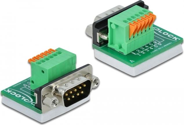 DeLOCK - Serieller Adapter - DB-9 (M) bis 6-poliger Anschlussblock - Daumenschrauben, Drucktaster (66554)