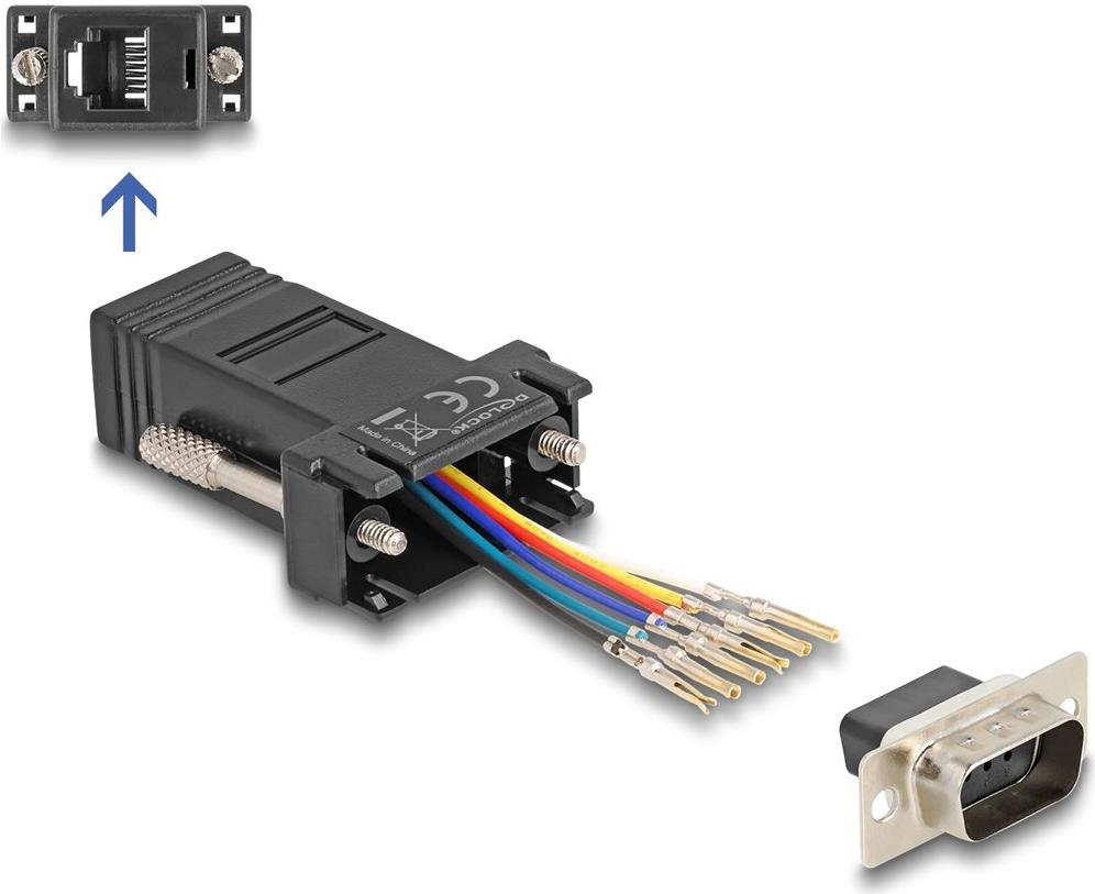 Delock D-Sub 9 Pin Stecker zu RJ12 Buchse Montagesatz schwarz (67072)
