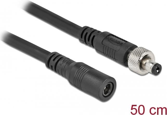 Delock - Spannungsversorgungs-Verlängerungskabel - Gleichstromstecker 5,5 x 2,1 mm (W) bis Gleichstromstecker 5,5 x 2,1 mm (M) schraubbar - 30 V - 2 A - 50 cm - Schwarz (86570)
