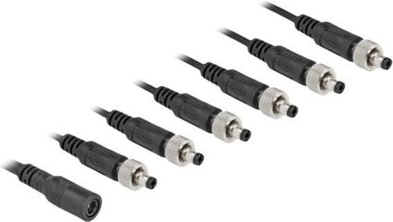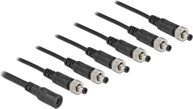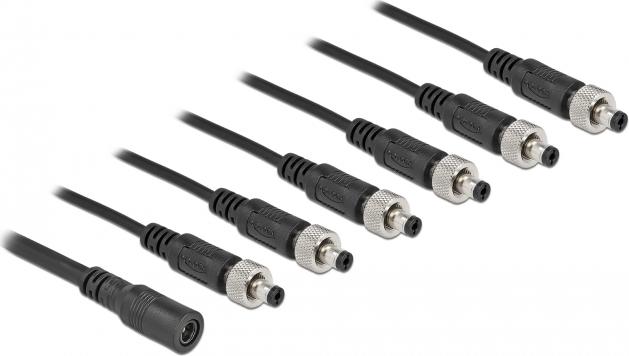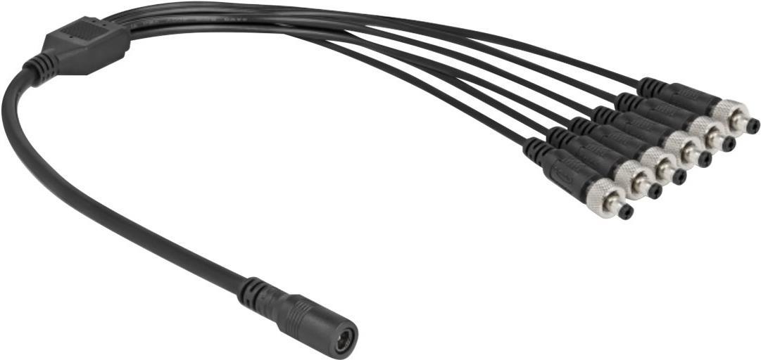 Dieses Verteilerkabel von Delock dient zum Anschluss von sechs Geräten, welche Kleinspannung benötigen, wie z. B. Kameras oder LED-Streifen an ein Netzteil mit DC Anschluss. Der Schraubanschluss an den Steckern sorgt für eine feste Verbindung mit den passenden DC Buchsen.