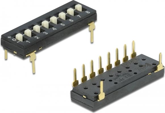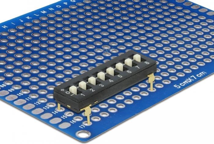 Dieser DIP-Schalter von Delock ist für die Lötmontage auf einer Platine geeignet.
