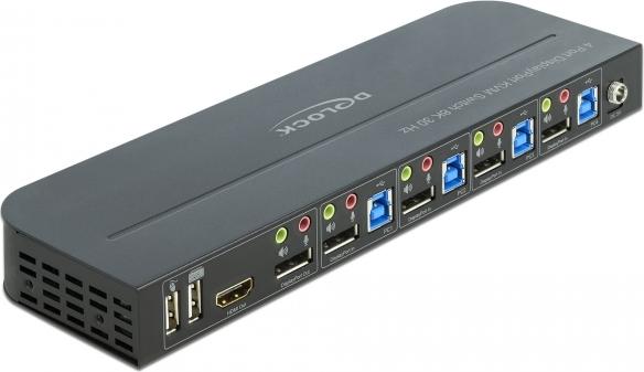 Aktuell habe ich noch einen Desktop Computer unter Debian Linux angeschlossen, Die Umschaltung des 4K Display-Port Monitors, USB Tastatur am entsprechenden KVM Switch Anschluss, analog Audio, USB Headset, USB Drucker funktioniert soweit gut mit einem zusätzlichen USB3 Hub am KVM Switch.